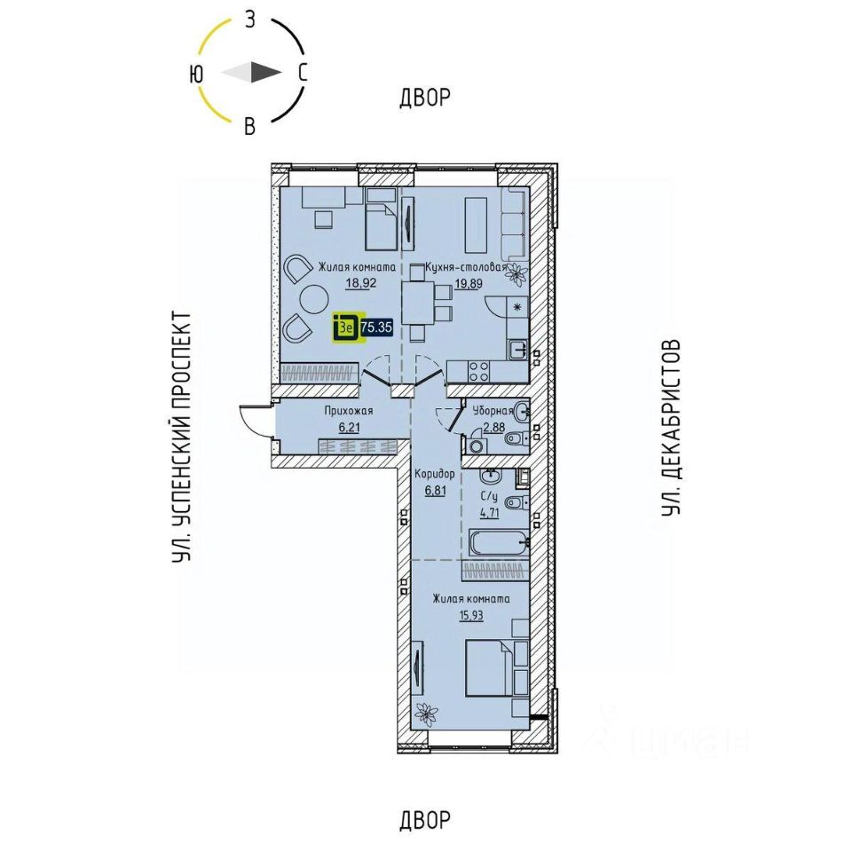 71 м² · Этаж 12 из 19