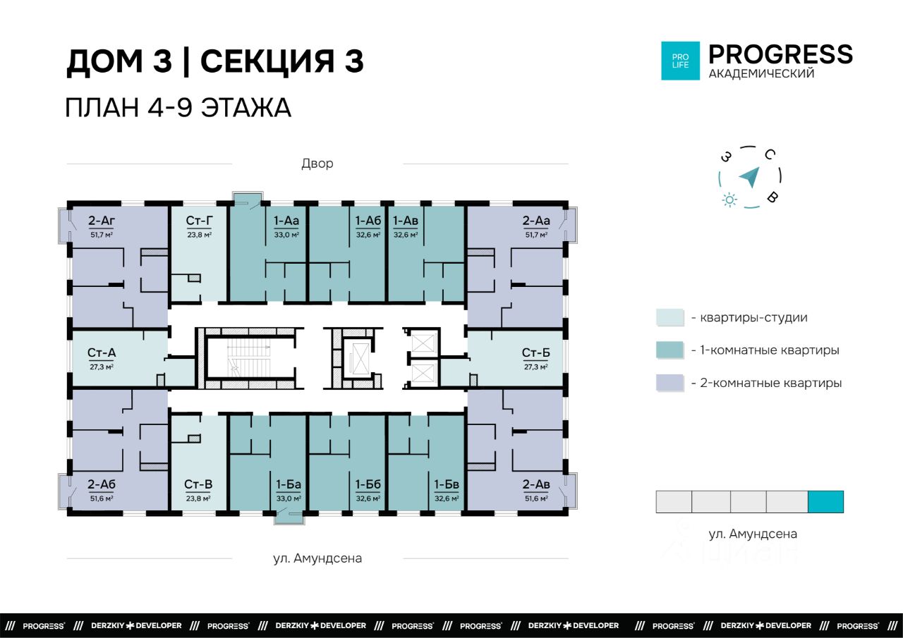 ''РАЗУМ в Академическом'' — это жилой комплекс из 7 домов переменной этажности от федерального девелопера ''РАЗУМ'' с 12-летним опытом создания жилых проектов.Дома от 12 до 24 этажей расположены в границах ул. Амундсена. В пешей доступности:- 6 школ,- 10 детских садов,- магазины,- поликлиники,- фитнес-залы.Рядом удобный выезд на ЕКАД.Главная особенность проекта — угловое остекление, которое составляет 22% всей площади. Окна в квартирах установлены в 60 см от пола. Увеличенная площадь остекления помогает снизить затраты на энергоресурсы и создаёт уют в квартире.Сердце жилого комплекса — приватный двор-парк с игровыми комплексами, тренажерами, площадками. ''городские грядки'' — новое решение благоустройства, где выращиваются ароматные травы или цветы.За пределами комплекса есть прогулочная зона с эко-тропой с вдохновляющими надписями. Прогулки по эко-тропе — это променады наедине с природой.''РАЗУМ в Академическом'' — это:- территория без машин,- безбарьерная среда,- единый экостиль в оформлении дворового пространства,- 11 тематических зоны в двор-парке,- многоуровневое освещение и подсветка фасадов,- видеонаблюдение,- гостевой паркинг,- эстетичные подъездные холлы со сквозными подъездами и комфортной зоной ожидания,- Разделенные колясочные и велосипедные зоны,- Велосипедные на 1 этаже,- Кладовые помещения на каждом этаже и на -1 этаже.В проекте 25 планировочных решений: от уютных студий от 21,51 м² до квартир с тремя спальнями и кухней-гостиной до 66,58 м² с функциональным разделением на гостевую и приватные зоны.