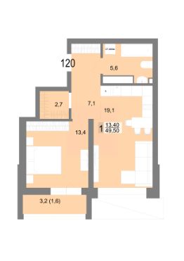 44 м2