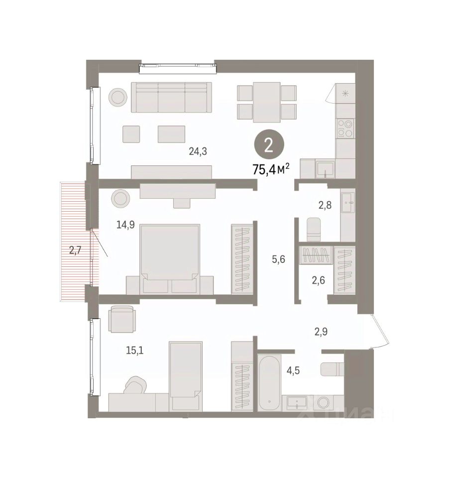 Спешите оформить бронирование на этих условиях! Предложение ограничено! Стоимость квартиры указана со скидкой, ваша экономия составит 360,000 RUB. Информация по телефону, мы вам все подробно расскажем! Продается 2-комн. квартира от застройщика с предчистовой отделкой в ЖК ''Квартал Траектория'' на 9 этаже. Общая площадь: 75.4 кв.м., жилая: 30 кв.м., площадь просторной кухни-столовой: 24.3 кв.м. Угловая квартира, очень светлая, естественная вентиляция при открытии окон. В квартире один балкон, один совмещенный и один раздельный санузел. Высота потолков 2.82 м. Дом монолитный, многоподъездный, переменной этажности, от 7 до 25 этажей. Квартира находится в 3-й секции высотой 16 этажей в корпусе 1-1. На этаже 7 квартир. В подъезде 1 пассажирский и 1 грузовой лифт. Начало строительства - 4 квартал 2025 года. Окончание строительства - 4 квартал 2027 года. Оформление сделки по договору долевого участия. Квартира с кухней-гостиной и двумя спальнями в квартале ''Траектория''. Особенности планировки: балкон, предчистовая отделка, разнесённые спальни. квартиры в нашей базе: МНВ01-Ж3.9.1. Квартал ''Траектория'' строится в границах улиц Билимбаевской, Расточной, Монтажников и Маневровой Раньше здесь находился оборонный завод 5-ЦАРЗ, основанный в 1945 году. После войны он ремонтировал военную и грузовую технику — от ''Виллисов'' и ''Студебекеров'' до советских ЗИС-5 и ГАЗ-67. Сортировка — район с развитой инфраструктурой, обжитыми жилыми кварталами разных эпох и большим количеством парков. До центра Екатеринбурга — 20 минут на машине. Туда же можно отправиться на автобусе: ближайшая остановка общественного транспорта — в 4 минутах от ''Траектории''. Рядом с ''Траекторией'' расположены магазины, торговый центр, детские сады, школы, поликлиники и полезные сервисы, а также другой проект Брусники — квартал ''Депо''. Если хочется развлечений, можно отправиться в ТРЦ ''Карнавал'' и парк с аттракционами ''Таганская слобода'' — дорога туда займёт не более 10 минут на машине. Квартал ''Траектория'' — первый этап комплексного развития территории, которую раньше занимали производственные здания. На месте бывших цехов Брусника создаст дружелюбную среду и комфортное пешеходное пространство для всего района. Для озеленения квартала мы подобрали больше 60 видов растений: ольху, липу, клён, иву, грушу, вишню, сирень, барбарис, гортензию, смородину, ирис, декоративные травы. Они цветут в разное время года и постоянно меняют настроение двора. В ''Траектории'' мы предусмотрели несколько общественных пространств, открытых для всех горожан: встречающий сквер, лесопарк у храма и событийный сквер между домами. Когда захочется тишины и уединения, можно устроить прогулку во внутренних дворах: в них нет машин и посторонних, зато много зелени, света и мест для отдыха. Каждый двор в квартале ''Траектория'' — продолжение квартиры, только под открытым небом. Здесь можно прогуляться босиком по траве, устроить утреннюю йогу, почитать книгу в гамаке или отправить детей поиграть, не переживая з