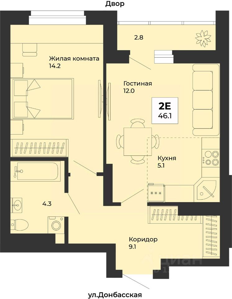 46 м² · Этаж 25 из 31