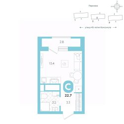 Эргономичная квартира-студия с лоджией и перспективой роста в цене — отличный выбор для тех, кто делает первые шаги к самостоятельной жизни. Общая площадь квартиры 21,8 кв.м., и ее умная планировка позволяет создать атмосферу, полностью отражающую ваши стиль и предпочтения.Квартира располагается в ЖК ''Комсомольский'' — жилом комплексе комфорт-класса. Здесь вы будете наслаждаться беззаботной жизнью, ведь ваш дом — воплощение практичности, безопасности и надежности. Для удобства предусмотрены колясочные на первых этажах домов, где можно оставить велосипеды и коляски в тепле. За безопасность отвечают система электронных ключей и видеонаблюдение. Еще здесь собственная котельная, поэтому в доме всегда будут горячая вода и оплата счетов только за фактически потребленное тепло.ПРЕИМУЩЕСТВА ЖКНа этаже 15 квартирКрасивые и функциональные парадные с мягкой и стильной зоной для отдыха, книгообменником, встроенными почтовыми ящиками и нишами для сумокКолясочные с доступом по ключуIP-домофоныТихие лифты с плавным ходомО ПРОЕКТЕЖК ''Комсомольский'' строится в спокойном Кировском районе Екатеринбурга в границах улиц Сыромолотова — Рассветная — 40-лет Комсомола. Комплекс состоит из трех домов переменной этажности, которые выделяются динамичными линиями, выразительными фасадами и стильными лоджиями.ЛОКАЦИЯВсё, что необходимо для повседневной жизни, находится недалеко от дома: школы, детские сады, продуктовые магазины, фитнес-клубы. Дорога до центра города на машине займет всего 10 минут — достаточно повернуть с улицы 40-летия Комсомола на улицу Владимира Высоцкого. Рядом с этим перекрестком начинается ''Тропа здоровья'' — большой терренкур вдоль ''Каменных палаток''.10 мин до центра3-4 минуты до школы No 82, гимназии No 1764-5 минут до детских садов No 208, No 583, 26620 мин до Свердловского областного медицинского колледжа и Центральной городской больницы No 7В рамках стратегического развития района на первых этажах домов появятся коммерческие помещения, в которых откроются магазины и кафе. Следует учесть, что к 2030 году в Кировском районе планируется формирование регионального рекреационно-оздоровительного кластера, строительство ветки метро, расширение и модернизация старых промышленных зон социальной и бизнес-инфраструктуры, что приведет к созданию комфортной среды для жизни.Кроме того, в стратегию входит развитие Шарташского лесного парка как центра регионального и международного туризма.СПОСОБЫ ПОКУПКИИпотека: подберем выгодные условия в нескольких банках, чтобы вы могли выбрать лучшееМатеринской капитал: можно использовать в качестве первоначального взноса Рассрочка: платите частями без %Сертификаты: позволяют оплатить часть стоимости квартиры О КОМПАНИИ''Паритет Девелопмент'' — это современный и ответственный подход к реализации проектов в сфере жилищного строительства. Компания формирует среду, способную создать новое качество жизни для клиентов, поэтому каждый проект имеет свою философию — не просто квадрат
