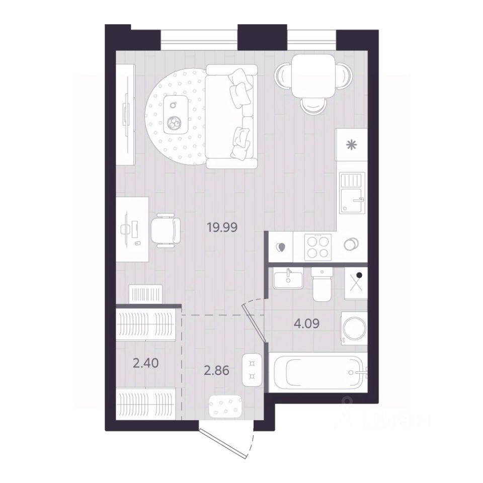 26 м² · Этаж 19 из 29