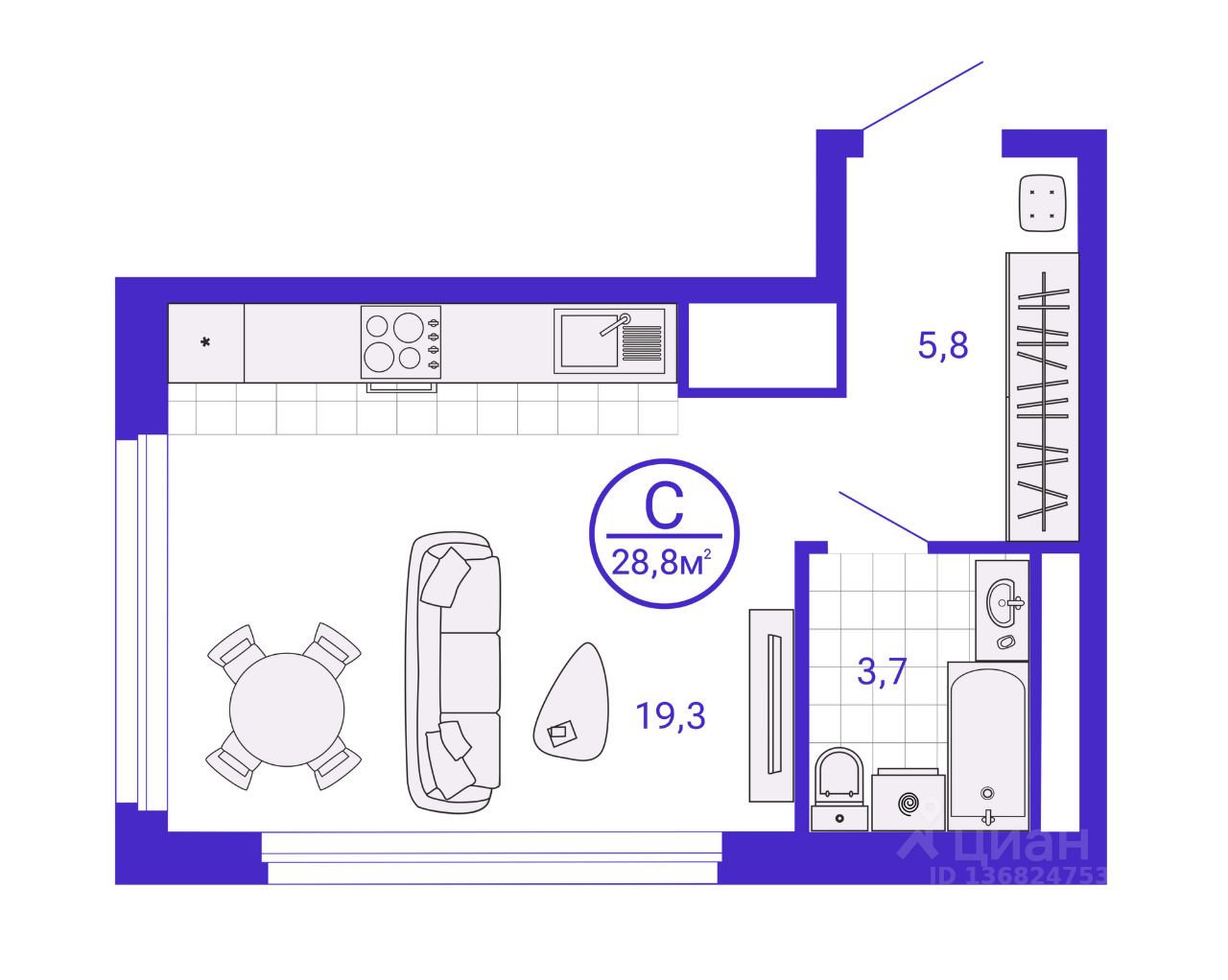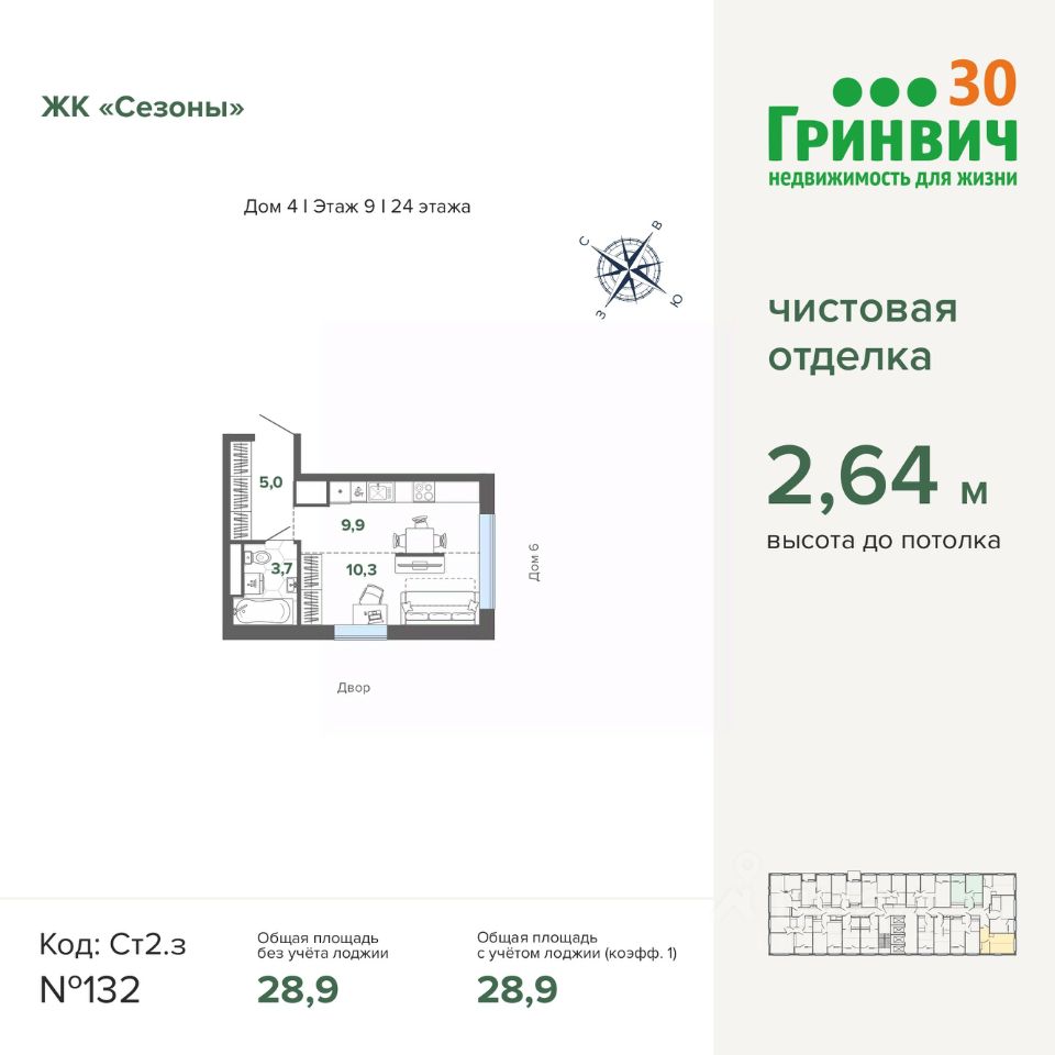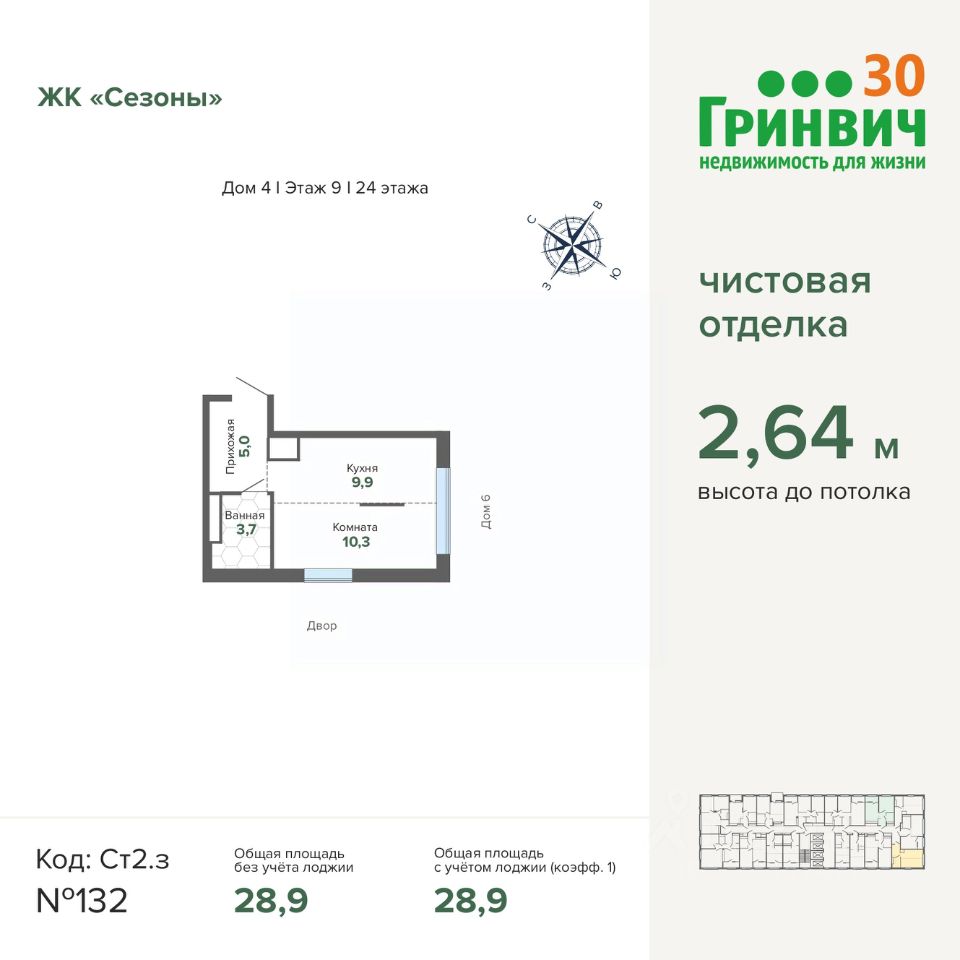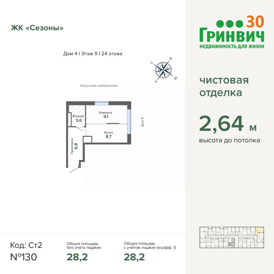 28 м² · Этаж 9 из 24