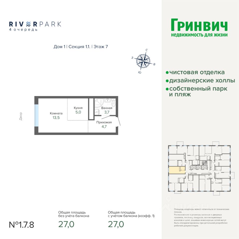 22 м² · Этаж 26 из 27