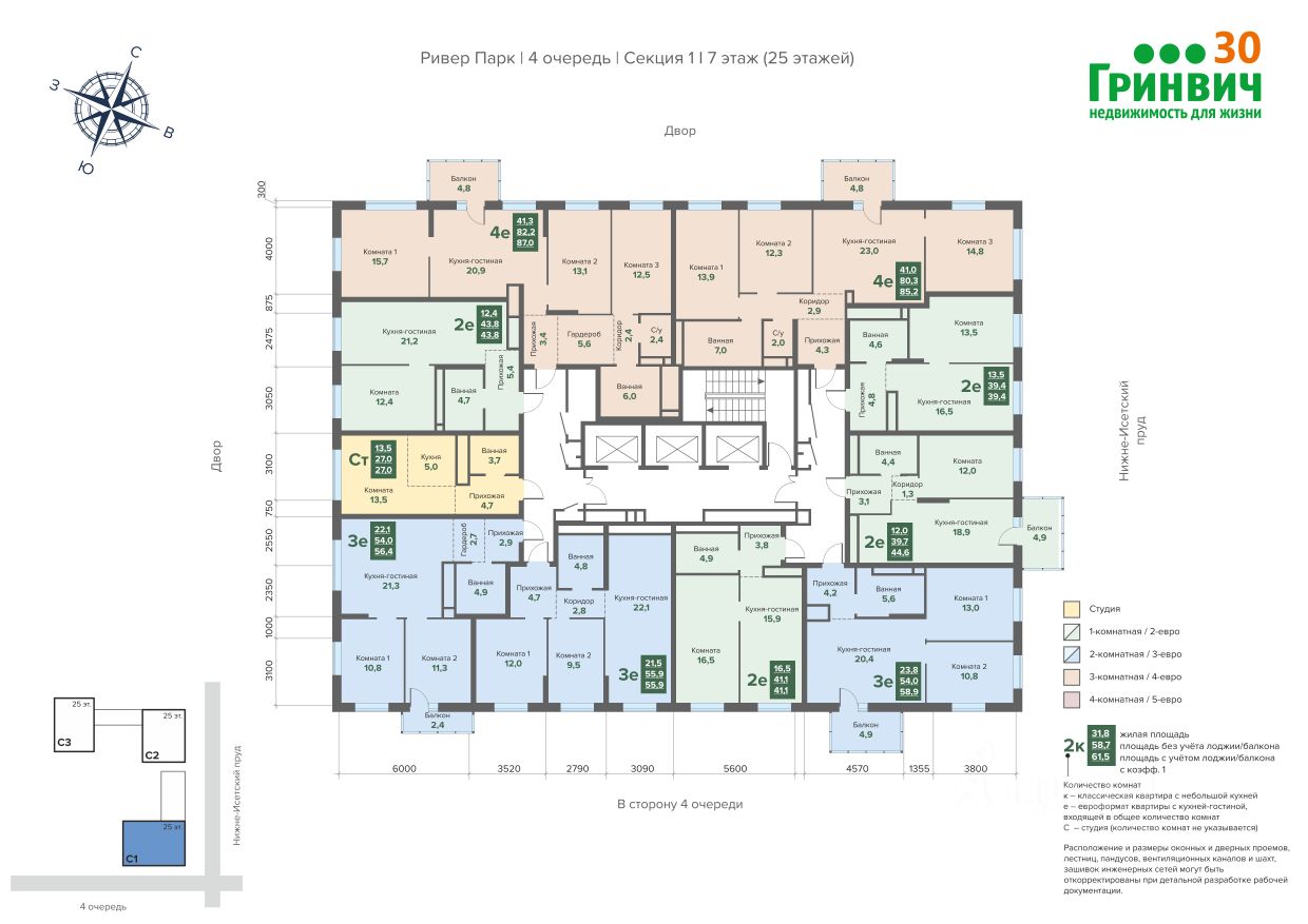Объект N 197036. Вашему вниманию предлагается студия в 4 очереди Ривер Парк. Застройщик Атлас (комфорт+). Отделка под ключ! Вид на юго-запад, во двор. У дома будет набережная с пляжем. Обеспечительный взнос 1 млн. на аккредитив, остальная сумма при получении ключей в декабре 2026 г, без промежуточных платежей. Безопасная сделка.