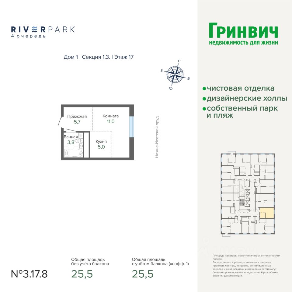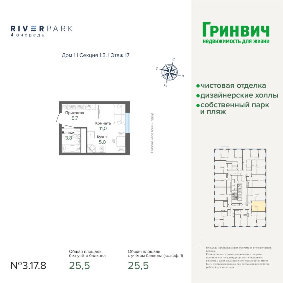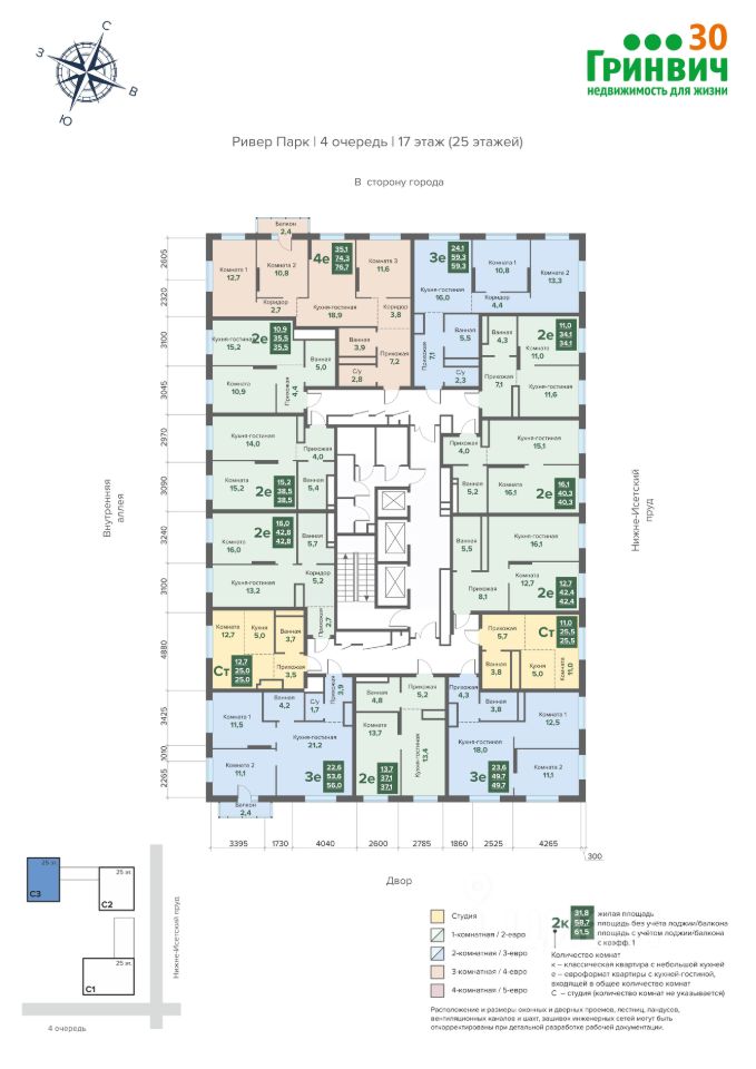 25 м² · Этаж 17 из 25