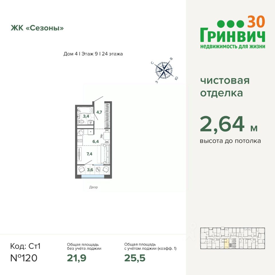 25 м² · Этаж 9 из 24