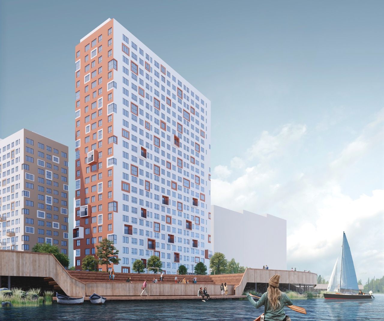 СКМ Ривер жилой комплекс комфорт-класса на берегу Нижне-Исетского пруда. Из окон открываются живописные виды на водоем, горы и лес. В пяти минутах ходьбы находится парк отдыха с благоустроенной набережной. До центра можно доехать за 20 минут на личном или общественном транспорте. Комплекс состоит из двух домов переменной этажности, объединенные общим двором-парком с многоуровневым озеленением. На первом этаже располагается галерея магазинов, где жители смогут найти все необходимое. Приватная территория, двор без машин и система видеонаблюдения делают дом безопасным и комфортным. Пространство двора разделено на зоны: для малышей, для подвижных игр детей постарше, воркаут-площадки для занятий спортом, а также прогулочные дорожки и уютные уголки для спокойного отдыха. Прозрачные входные группы расположены на уровне земли, домофон находится в теплом тамбуре. Дизайнерский холл оборудован мягкой зоной для ожидания такси, колясочными комнатами, гостевыми санузлами и лапомойками. Разнообразные планировочные решения: от квартир с одной спальней для молодых пар до вариантов с тремя спальнями для семей с несколькими детьми. Для тех, кто хочет сделать дизайн-проект самостоятельно, мы предлагаем квартиры в предчистовом варианте, также можно заказать чистовую отделку. Все подробности о проекте и условиях покупки в отделе продаж СКМ Девелопмент.