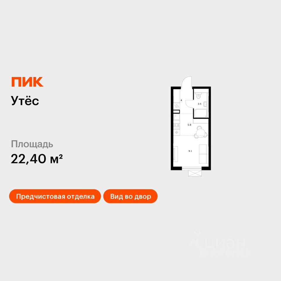 Продаётся квартира-студия площадью 22,4 кв.м на 23 этаже 29 этажного дома (Корпус 6, Секция 1) проекта ПИК Утёс. Светлый просторный подъезд на уровне земли, функциональная планировка, большие окна, предчистовая отделка. Жилой квартал ''Утёс'' находится в Екатеринбурге, в самом центре микрорайона Уктус, в 25 минутах на автомобиле от центра города. Рядом река Исеть, на которую открывается панорамный вид из окон квартала. Для прогулок возле реки у жителей проекта будет собственная благоустроенная набережная. В микрорайон входит десять жилых корпусов, собственный детский сад для 236 малышей и многоуровневые надземные паркинги на 848 мест. На первых этажах домов откроются кафе, магазины и другие сервисы. Застройка разной высоты даёт ощущение свободного пространства и пропускает много естественного света в квартиры и во дворы. Во дворах появятся уютные парки с детскими площадками и местами для отдыха - здесь можно будет отдохнуть после работы, поболтать с соседями, почитать в тени или позаниматься йогой. Спортивные площадки мы разместим так, чтобы шум от них не мешал жителям. В окружающем районе есть всё для комфортной жизни: школы, детские сады, поликлиники, продуктовые магазины. За 7 минут на автомобиле можно доехать до крупных торговых центров - например, до ТРЦ ''Глобус''. Рядом есть парки - Парк Лесоводов России, ''Уктусские горы'' и Карасье-Озёрский лесной парк. Артикул 967181 (Застройщик ООО ''СЗ ''АРТСТРОЙ'')