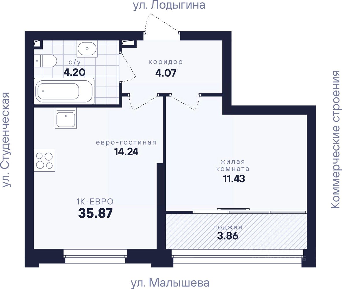 1-к, Студенческая, 1д стр.