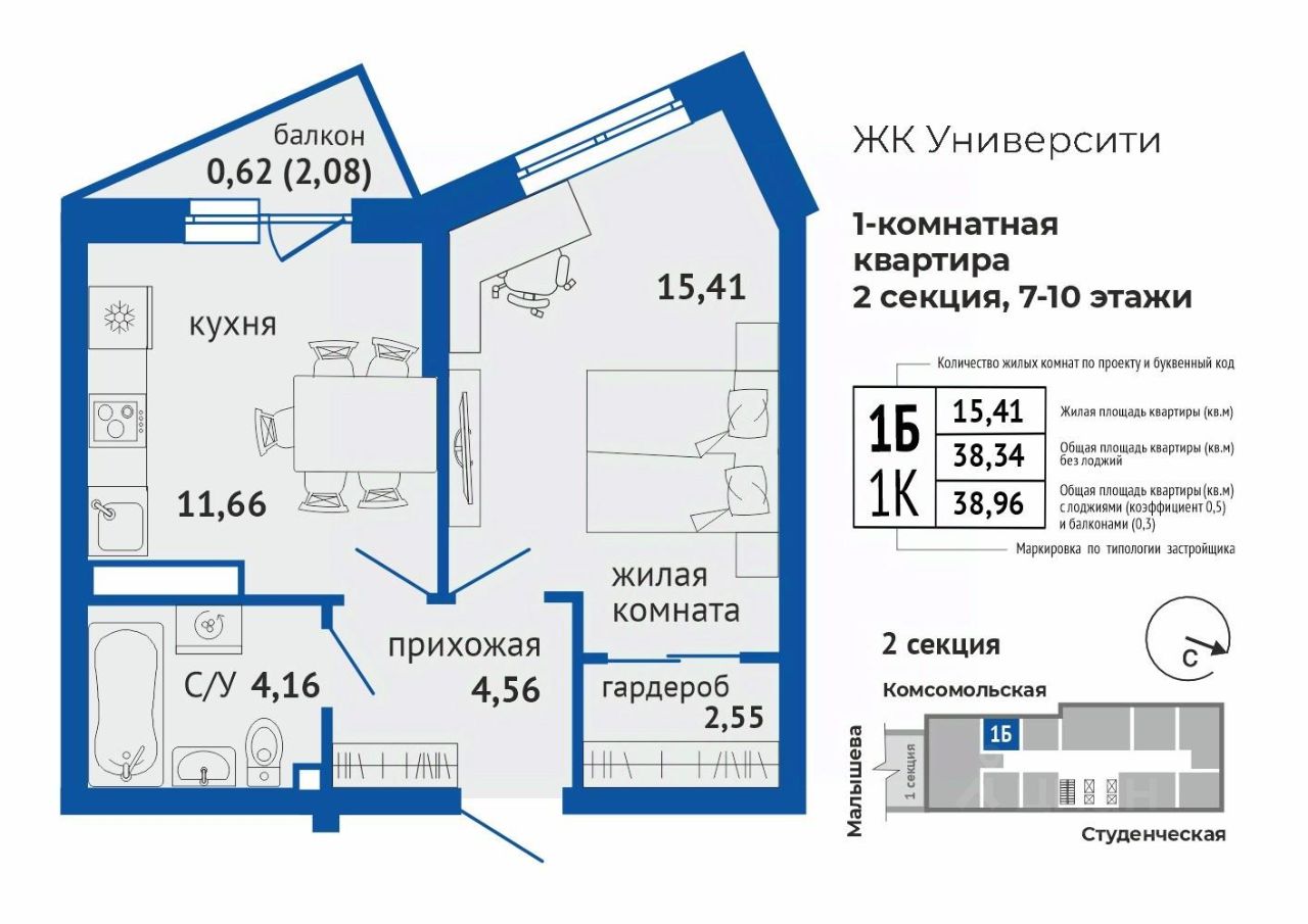 1-к, Блюхера, 40а