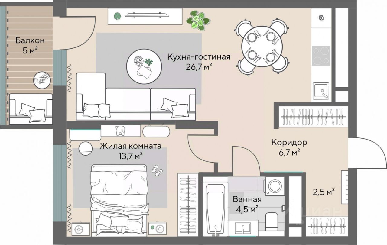 46 м² · Этаж 16 из 31