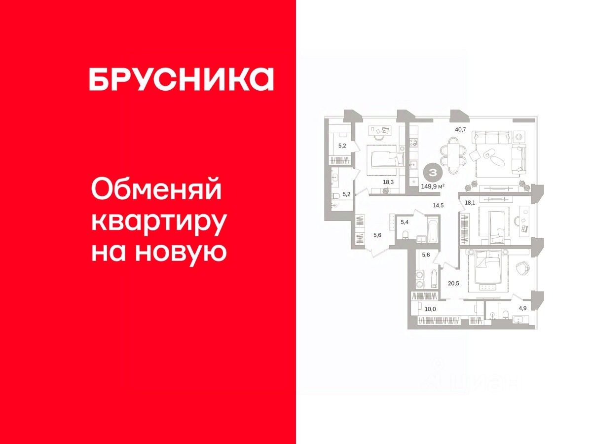 149 м² · Этаж 19 из 25