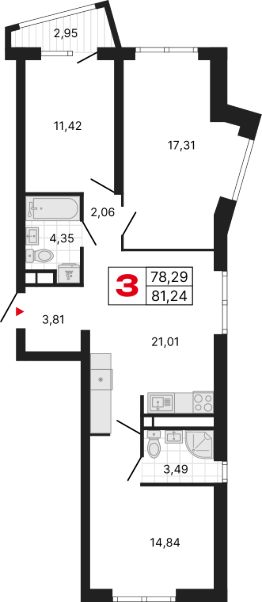 3-к, Мира, 47 корп. 3 Показать на карте
