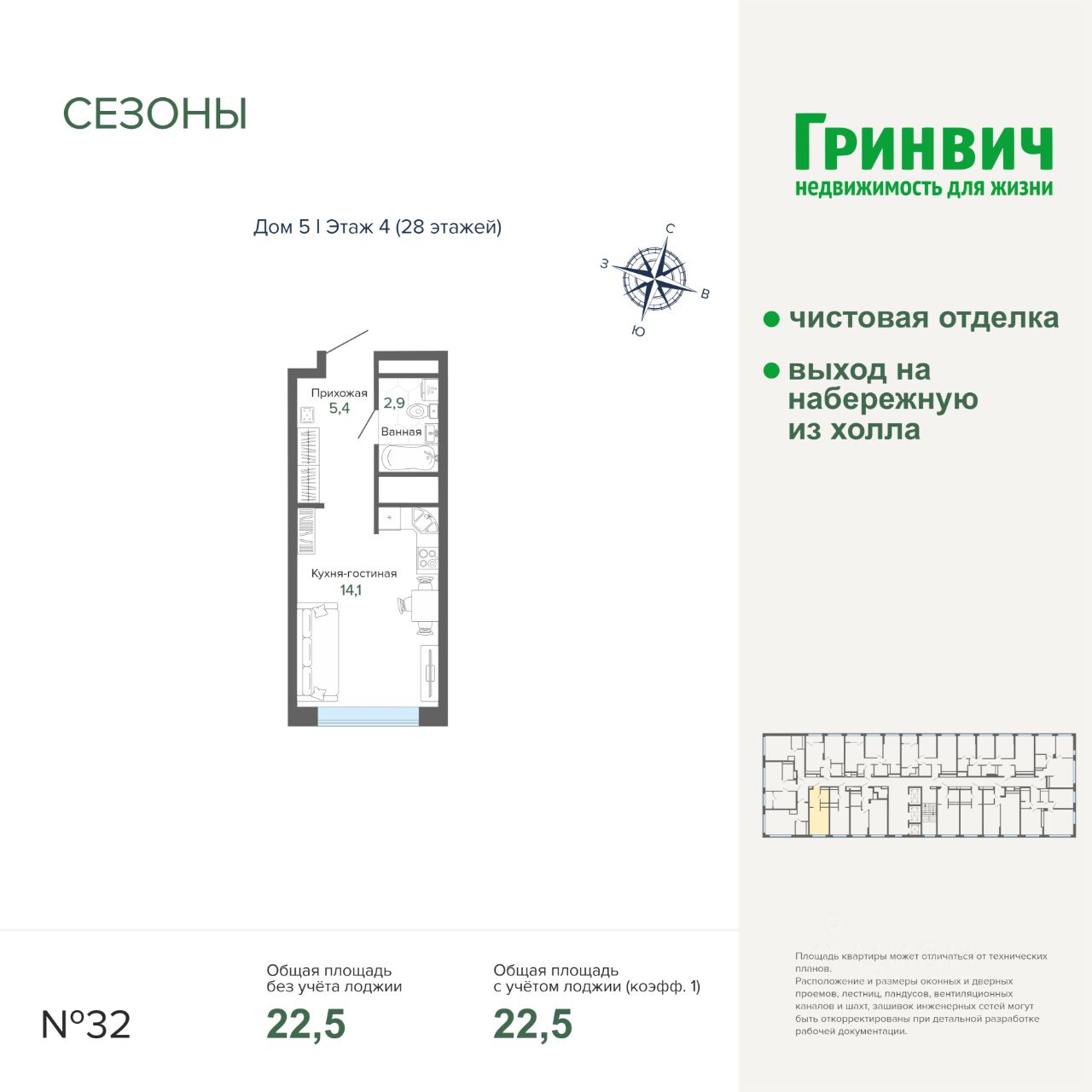 22 м² · Этаж 4 из 28