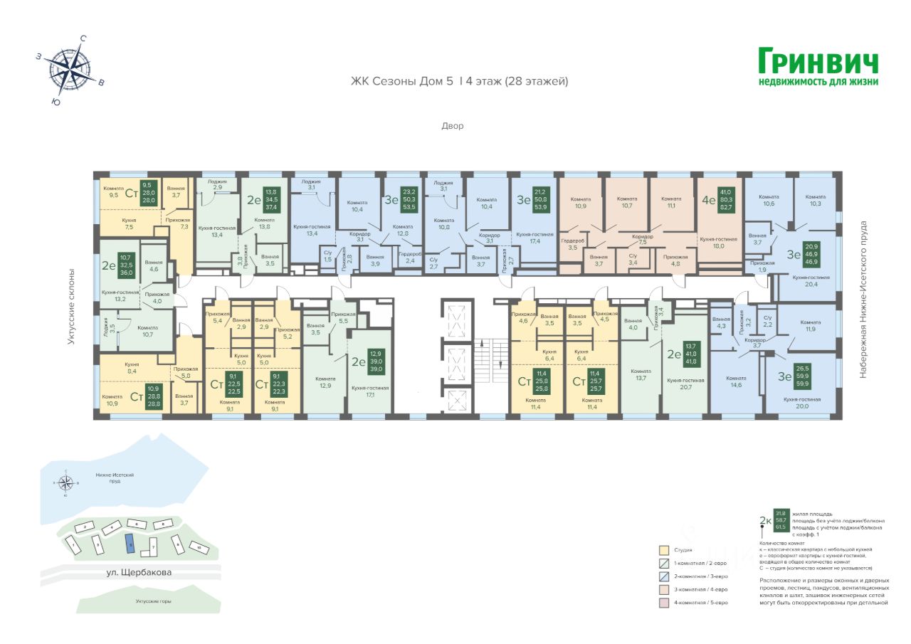 Продается квартира в ЖК ''Сезоны'' (5 очередь) от Гринвич недвижимость. Квартиры на набережной с видом на горы. Квартира с чистовой отделкой ''Сезоны'' — новые жилые кварталы, состоящие из 10 домов переменной этажности — городской комфорт на природе. Комплекс расположен в районе на воде ''Уктусская набережная'' — современный ансамбль жилых кварталов, объединенных рекреационным кластером площадью 8,9 га со своими парками, пляжами, пирсами и зоной отдыха на острове Доступна фирменная рассрочка от Гринвич недвижимость О доме и территории: Современный монолитно-газобетонный дом. - Первая береговая линия — выход на набережную из холла - Из большинства квартир виды на водную гладь или горы - Кладовые в каждом доме - Срок сдачи: 3 квартал 2027 года. - Концепция ''двор без машин'': безопасное пространство с детскими и спортивными площадками, зонами тихого отдыха.