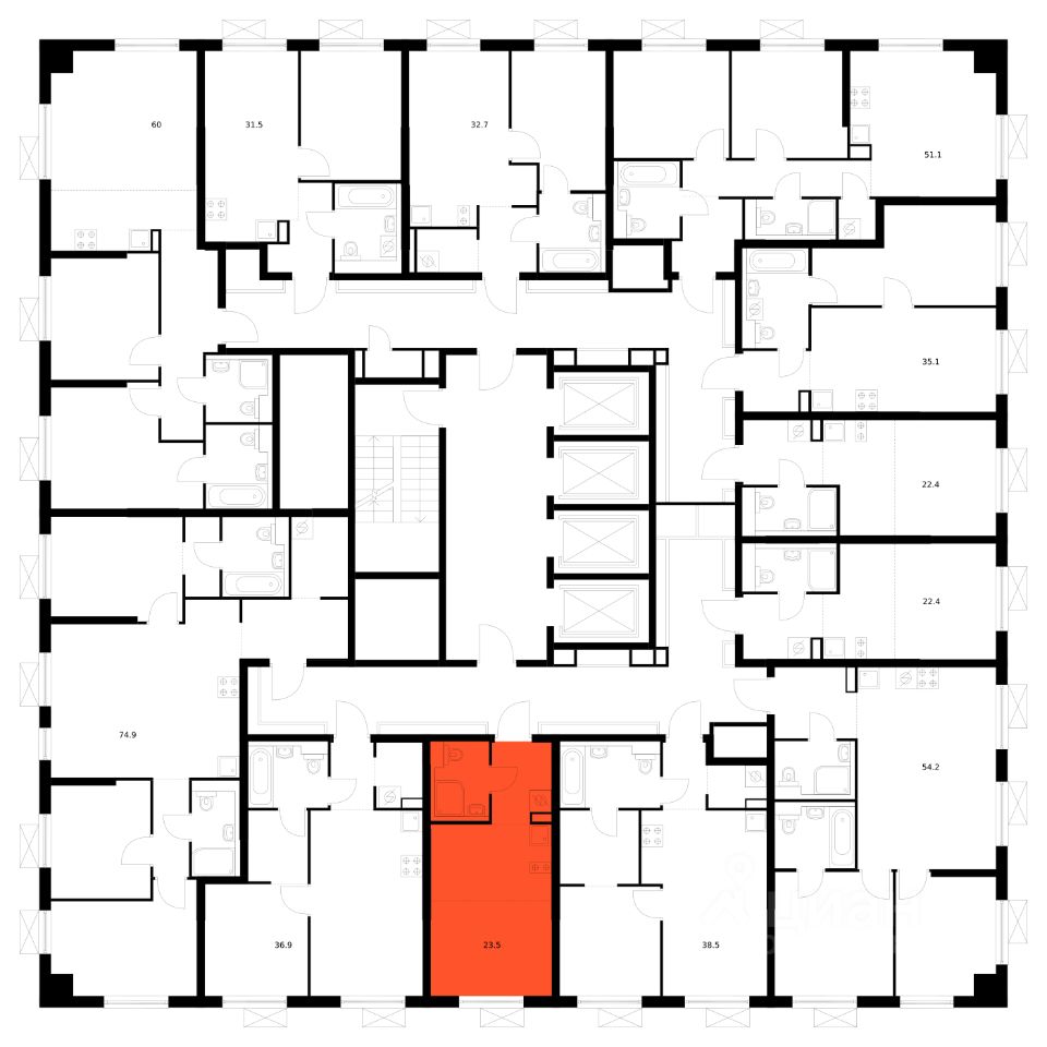 23 м² · Этаж 22 из 29