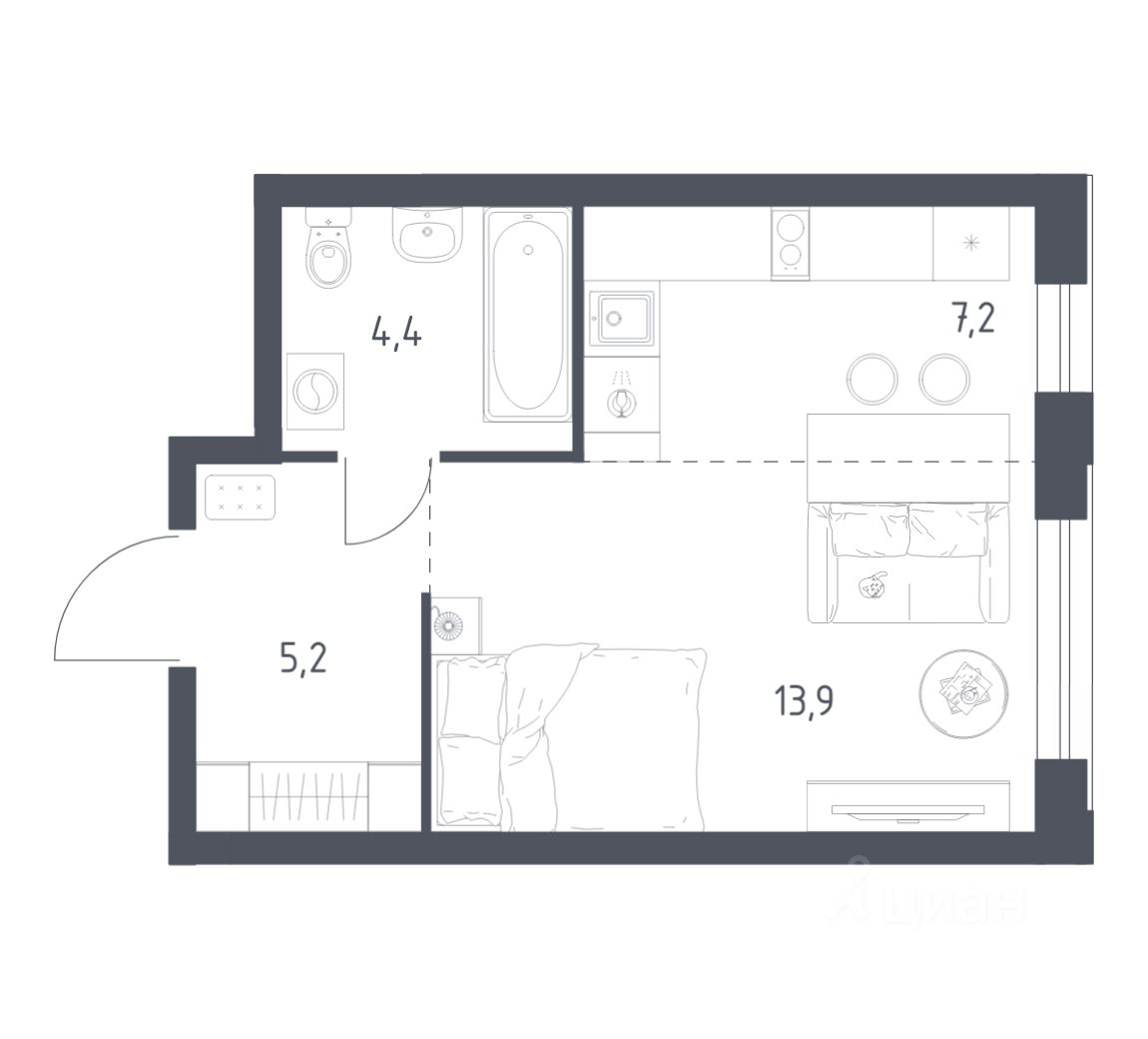 Эргономичная квартира-студия с лоджией и перспективой роста в цене — отличный выбор для тех, кто делает первые шаги к самостоятельной жизни. Общая площадь квартиры 27,9 кв.м., и ее умная планировка позволяет создать атмосферу, полностью отражающую ваши стиль и предпочтения. Квартира располагается в ЖК ''Комсомольский'' — жилом комплексе комфорт-класса. Здесь вы будете наслаждаться беззаботной жизнью, ведь ваш дом — воплощение практичности, безопасности и надежности. Для удобства предусмотрены колясочные на первых этажах домов, где можно оставить велосипеды и коляски в тепле. За безопасность отвечают система электронных ключей и видеонаблюдение. Еще здесь собственная котельная, поэтому в доме всегда будут горячая вода и оплата счетов только за фактически потребленное тепло. ПРЕИМУЩЕСТВА ЖК На этаже 14 квартир Красивые и функциональные парадные с мягкой и стильной зоной для отдыха, книгообменником, встроенными почтовыми ящиками и нишами для сумок Колясочные с доступом по ключу IP-домофоны Тихие лифты с плавным ходом О ПРОЕКТЕ ЖК ''Комсомольский'' строится в спокойном Кировском районе Екатеринбурга в границах улиц Сыромолотова — Рассветная — 40-лет Комсомола. Комплекс состоит из трех домов переменной этажности, которые выделяются динамичными линиями, выразительными фасадами и стильными лоджиями. ЛОКАЦИЯ Всё, что необходимо для повседневной жизни, находится недалеко от дома: школы, детские сады, продуктовые магазины, фитнес-клубы. Дорога до центра города на машине займет всего 10 минут — достаточно повернуть с улицы 40-летия Комсомола на улицу Владимира Высоцкого. Рядом с этим перекрестком начинается ''Тропа здоровья'' — большой терренкур вдоль ''Каменных палаток''. 10 мин до центра 3-4 минуты до школы No 82, гимназии No 176 4-5 минут до детских садов No 208, No 583, 266 20 мин до Свердловского областного медицинского колледжа и Центральной городской больницы No 7 В рамках стратегического развития района на первых этажах домов появятся коммерческие помещения, в которых откроются магазины и кафе. Следует учесть, что к 2030 году в Кировском районе планируется формирование регионального рекреационно-оздоровительного кластера, строительство ветки метро, расширение и модернизация старых промышленных зон социальной и бизнес-инфраструктуры, что приведет к созданию комфортной среды для жизни. Кроме того, в стратегию входит развитие Шарташского лесного парка как центра регионального и международного туризма. СПОСОБЫ ПОКУПКИ Ипотека: подберем выгодные условия в нескольких банках, чтобы вы могли выбрать лучшее Материнской капитал: можно использовать в качестве первоначального взноса Рассрочка: платите частями без % Сертификаты: позволяют оплатить часть стоимости квартиры О КОМПАНИИ ''Паритет Девелопмент'' — это современный и ответственный подход к реализации проектов в сфере жилищного строительства. Компания формирует среду, способную создать новое качество жизни для клиентов, поэтому каждый проект имеет свою философию — не просто квадр
