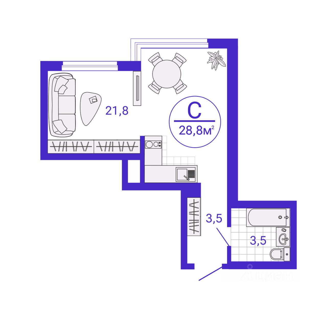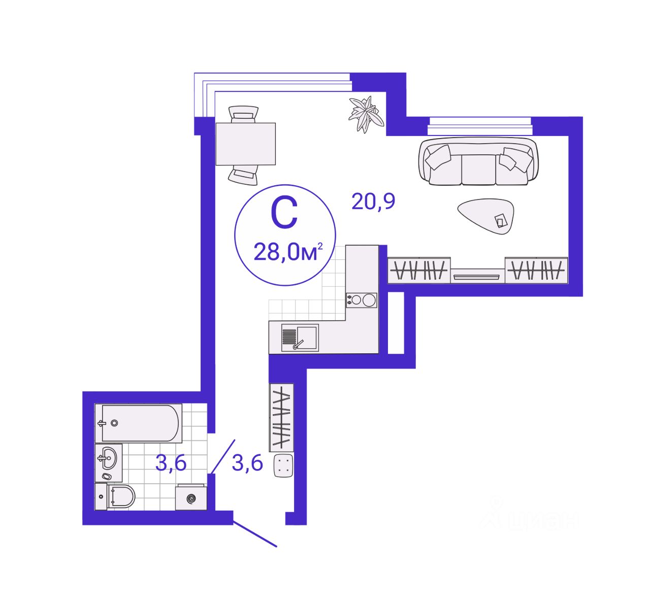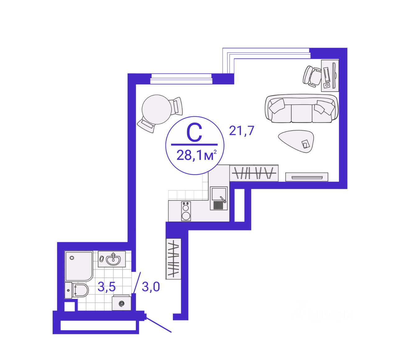 28 м² · Этаж 27 из 27