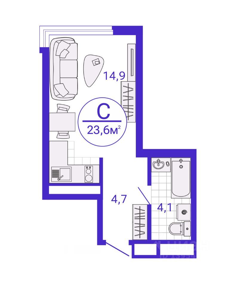 23 м² · Этаж 22 из 27