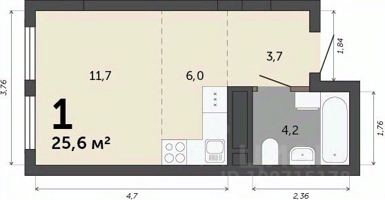 26 м² · Этаж 4 из 23