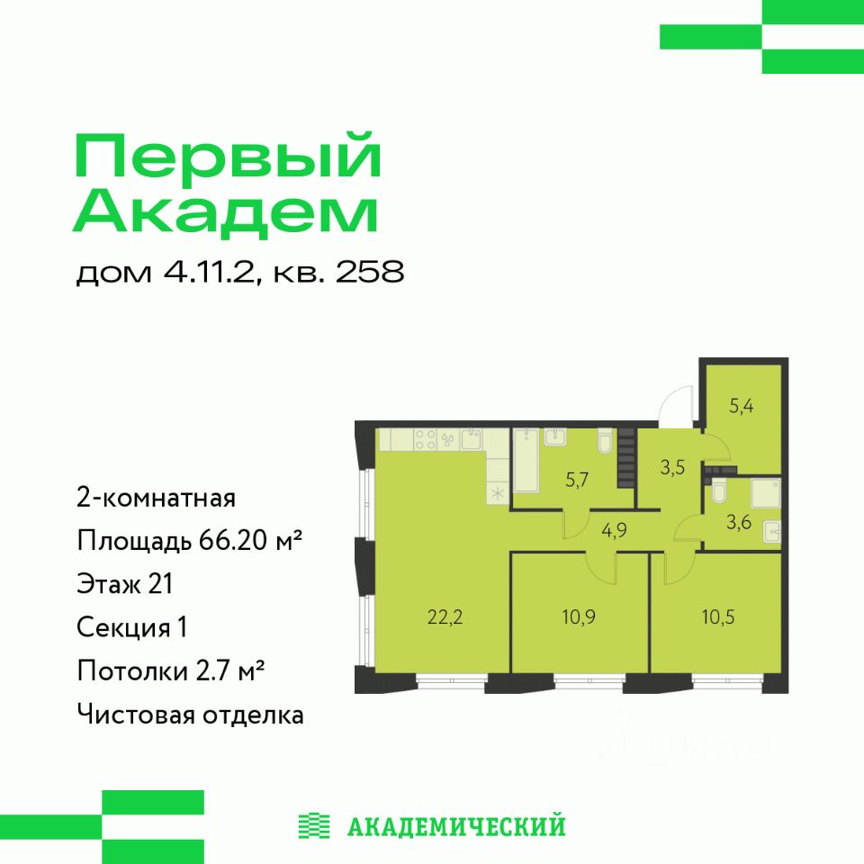 66 м² · Этаж 21 из 25