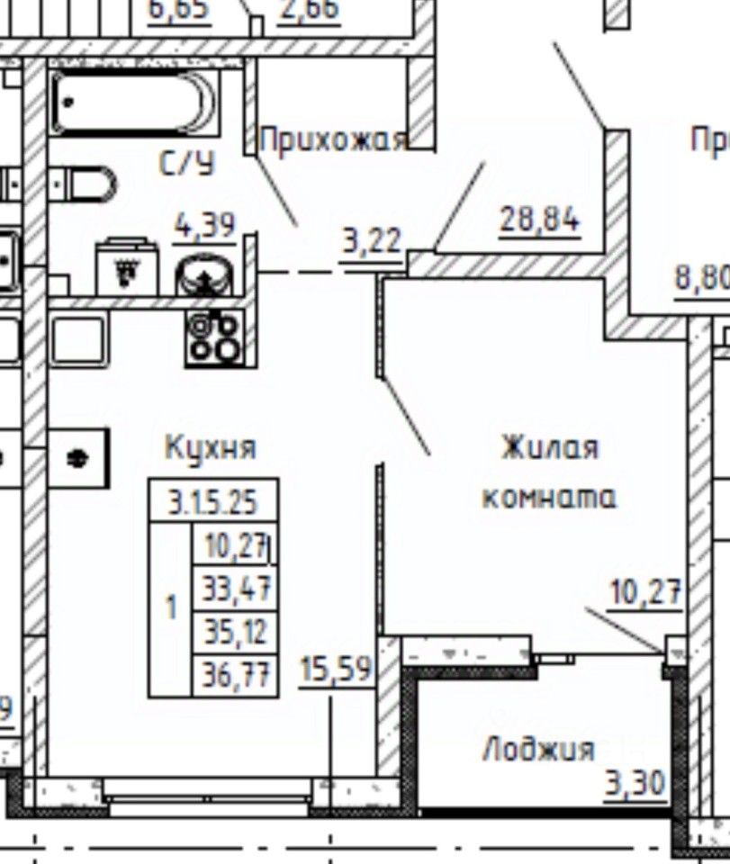 44 м² · Этаж 15 из 15