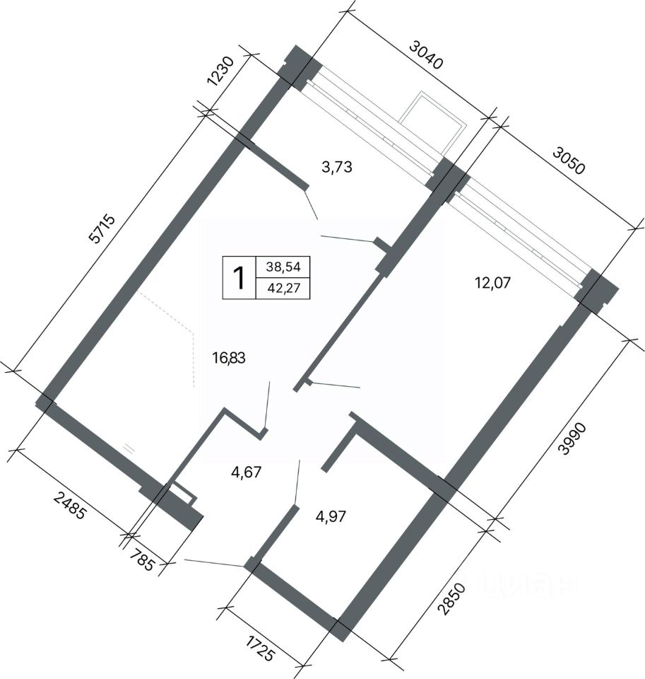 42 м² · Этаж 19 из 27