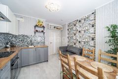 Продается замечательная евро 2х-комнатная квартира (1 комната и кухня гостиная ).Отличный вариант для молодой семьи или сдачи в аренду.Квартира на 17 этаже, солнечная сторона.Просторная гостиная с выходом на балкон и спальня.В квартире остается кухонный гарнитур, плита, диван, кровать, шкаф купе, стенка в прихожей.В ванной сделан ремонт 2 года назад, полностью в кафеле.Закрытая территория двора с оборудованными детскими и спортивными площадками, корт для футбола и волейбол. Своя управляющая компания, круглосуточная охрана и видеонаблюдение.Развитая инфраструктура: школа, садик во дворе, клубы и секции для детей, ТЦ, рестораны в пешей доступности, продуктовые магазины, ЖизньМарт, аптеки, остановки автобуса.Рядом сосновый лес с пешими тропами, березовая роща с детской площадкой.Чистая продажа. Без долгов и обременений. Приобреталась за наличные. В собственности более 5 лет.Один взрослый собственник. Код пользователя: 270183Номер в базе: 9986716