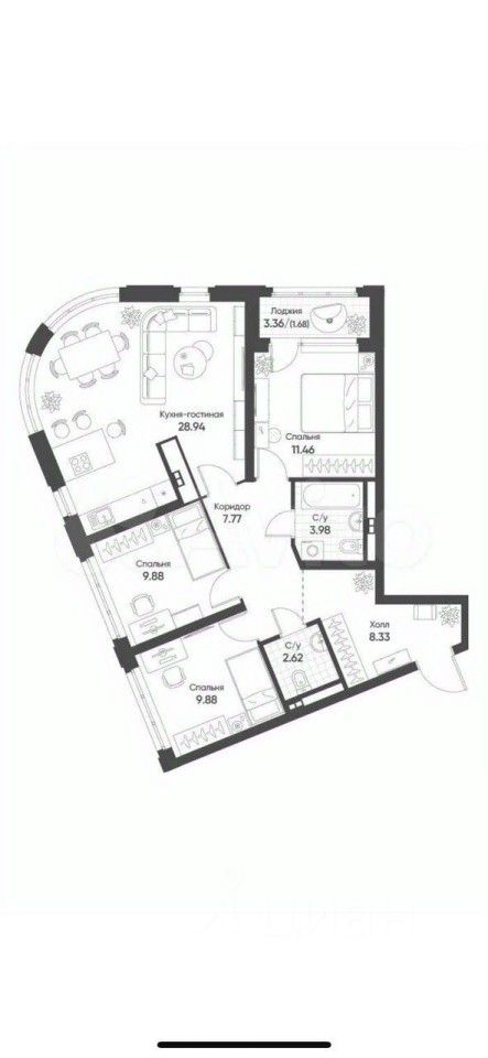 86 м² · Этаж 1 из 9