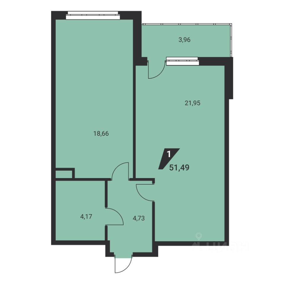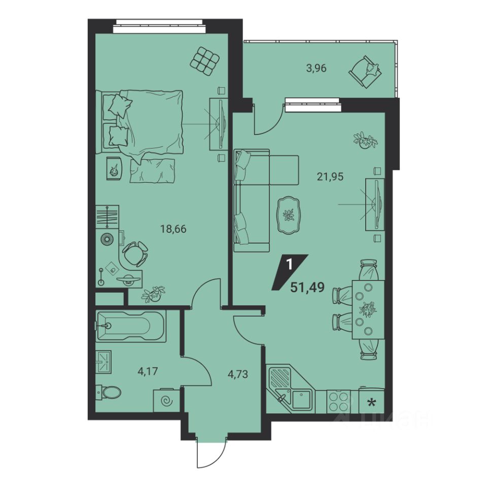 51 м² · Этаж 22 из 25