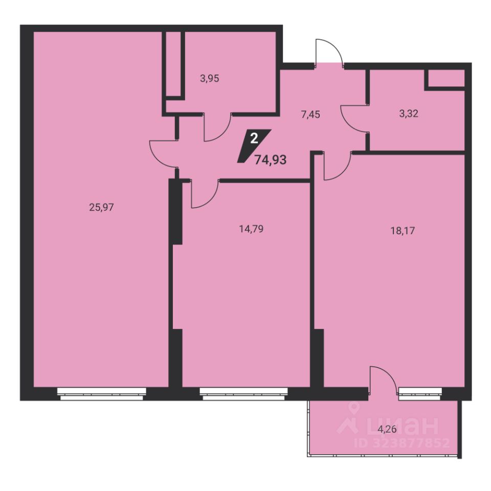 74 м² · Этаж 24 из 25