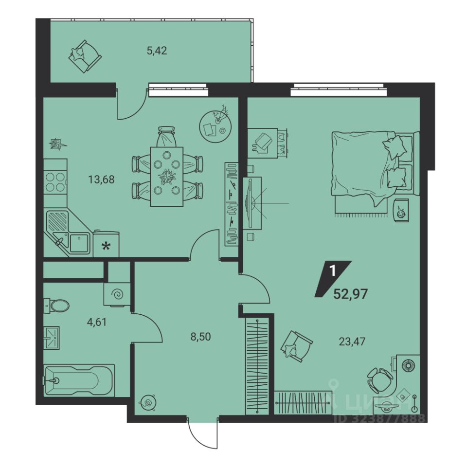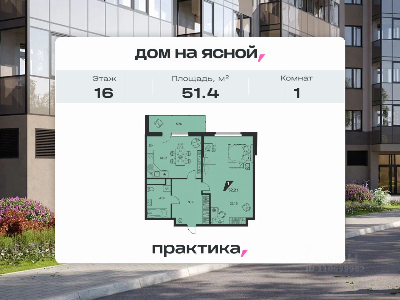 52 м² · Этаж 2 из 25