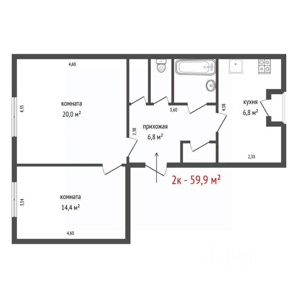 2-к, Черниговский переулок, 20