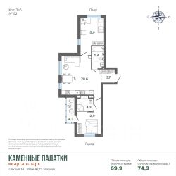 Продается квартира в современном Квартал-парке ''Каменные Палатки'' новый жилой комплекс комфорт-класса расположен на границе микрорайонов ЖБИ и Втузгородок, в 15 минутах от центра города рядом с природным парком Каменные палатки и озером Шарташ.В продаже 4 очередь (секция 14).Преимущества квартир:• Высокие потолки (2,7 м),• Качественная чистовая отделка: входные двери, ламинат, обои под покраску, установлена сантехника,• Горизонтальная разводка систем отопления свободные стены,• Счетчики на э/э, воду и тепло ежемесячная экономия на коммунальных платежах,• Сделаны входы для слаботочных сетей (интернет, телефон, цифровое телевидение).Преимущества дома:• Просторная закрытая придомовая территория,• Прямо из комплекса выход в природный парк Каменные Палатки,• Просторная наземная парковка и подземный паркинг,• Муниципальный детский сад в 3й очереди на 200 мест,• В жилом комплексе расположены ЖизньМарт, Монетка, Пятёрочка, пункты выдачи ЯндексМаркет, Ozon и Wildberries. Детский оздоровительный центр и стоматологическая клиника. • В нескольких минутах от дома расположены: гимназия 45, пять детских садов, гипермаркет ''Магнит Семейный''.