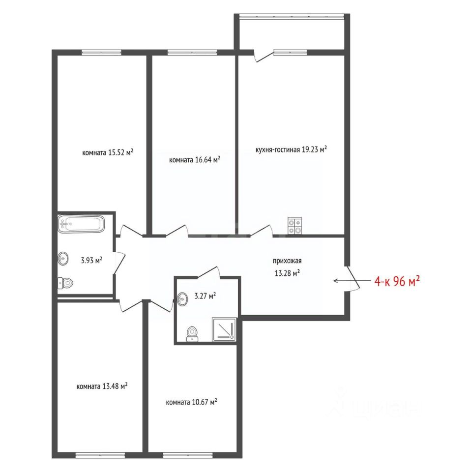 96 м² · Этаж 7 из 19