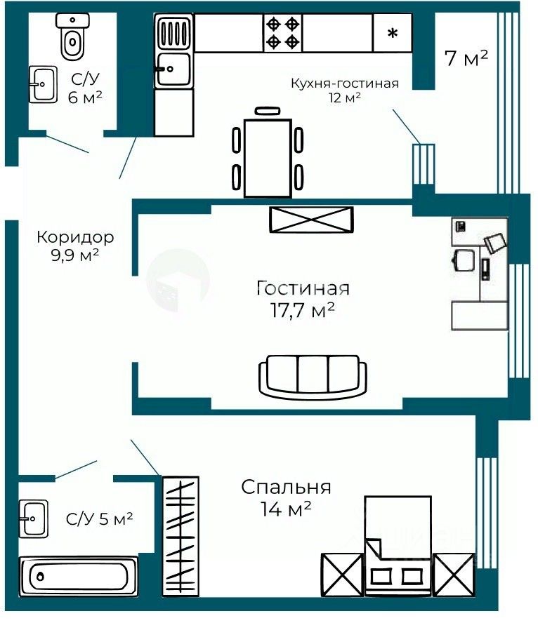 59 м² · Этаж 12 из 17