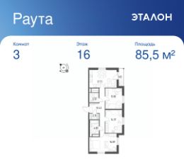 Продается 3-к квартира отделка White Box в ЖК ''Раута''.Общая площадь квартиры — 85.5 кв. м, этаж 16 из 25.Тип дома — монолитный.Цена указана при 100% оплате.