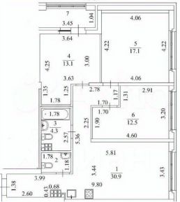 При присоединении кухни (надо убрать перегородку НЕ несущую) получается гостинная 32м2 и три изолированныз спальни. Пока это четырехкомнатная с 4мя изолированными комнатами.