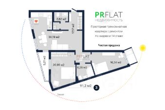 Уникальное предложение по соотношению цена/качество! В чистой продаже просторная квартира в 10 минутах от центра по адресу улица Библиотечная, дом 50а (ЖК Библиотечный, микрорайон Втузгородок).Квартира общей площадью 91,2 кв. м: большая светлая кухня-гостиная - 30,2 кв. м с выходом на лоджию, две спальни - 21 и 16,3 кв. м, прихожая и коридор - 17,2 кв. м, два санузла, кладовая.Окна на две стороны - юг и север. Расположена квартира на комфортном видовом 14 этаже.Квартира с ремонтом. После покупки можно сразу заезжать и жить. Кухонный гарнитур остается новому владельцу, прочая меблировка - по согласованию.Расходы на обслуживание: комфортные коммунальные платежи, так как установлены счетчики.ЖК Библиотечный - комплекс комфорт класса, сдан в 2015 году. В доме чистые подъезды, есть видеонаблюдение и охрана. Во дворе - детская площадка. На первом этаже есть детский развивающий центр для детей с 3-х лет (подготовка к школе), салон красоты, спортивный зал для мини-групп.Дом расположен в микрорайоне с развитой социальной и общественной инфраструктурой. В шаговой доступности: супермаркеты, магазины, кофейни, кафе и рестораны, фитнес-клубы, медицинские учреждения, а также школы, гимназии, Суворовское училище, УрФУ. Рядом расположен прекрасный Дендрологический парк. В паре минут пешком - остановки общественного транспорта.Оформление: чистая продажа. Быстрый выход на сделку, продается по договору купли-продажи (ДКП), возможна ипотека на вторичку.С удовольствием рассмотрим покупателя со 100% оплатой или ипотекой любого банка с первоначальным взносом.Покупка данной квартиры от РR FLАТ недвижимость даёт ряд преимуществ:+ одобрение ипотеки под этот объект - оперативно и бесплатно,+ электронная регистрация сделки в офисе агентства,+ комфортное и внимательное сопровождение сделки,+ РR FLАТ недвижимость - надежный партнер Уральской палаты недвижимости.Если вы владелец недвижимости - обращайтесь к нам, также достойно представим, прорекламируем и выгоднопродадим ваш объект!/Коллеги риэлторы и другие пользователи Циан, просьба не копировать авторское описание объекта, а также фото и планировку. Материалы созданы нашей компанией и согласно закону: авторское право в сети интернет защищает любые виды контента - тексты, изображения, фото, дизайн, графику/Реальное предложение), запись на просмотр по телефону в объявлении, звоните!