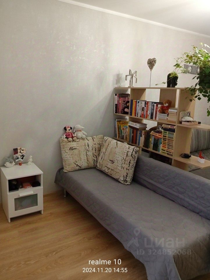 Объект N 195284. Однокомнатная квартира на третьем этаже. Окна выходят во двор. Большая лоджия. Натяжные потолки, установлены счетчики ХВС и ГВС, раздельный санузел. На кухне теплый пол. Удобная транспортная развязка, общественный транспорт в шаговой доступности. Торговый центр ''Радуга'', продуктовые супермаркеты, аптеки, школа, детский сад.