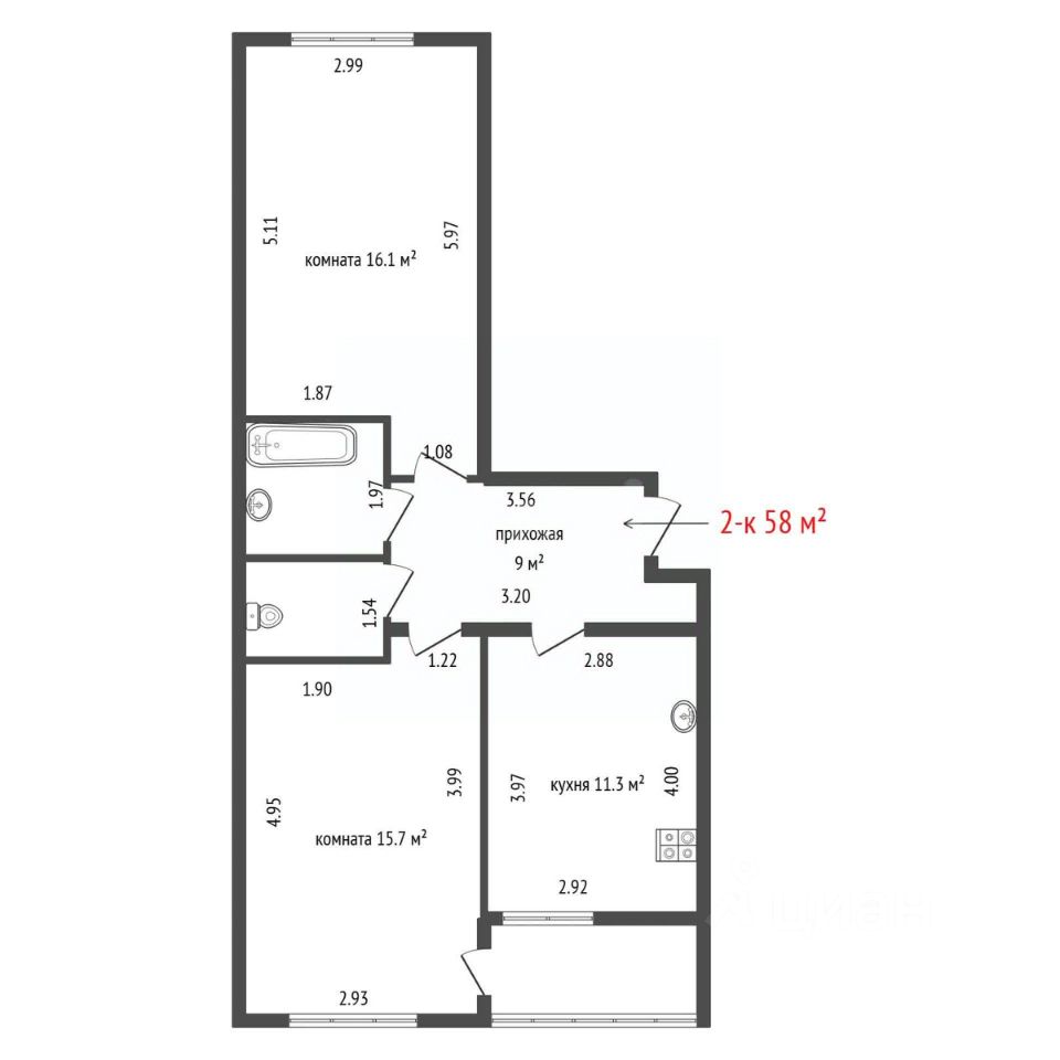 58 м² · Этаж 4 из 16