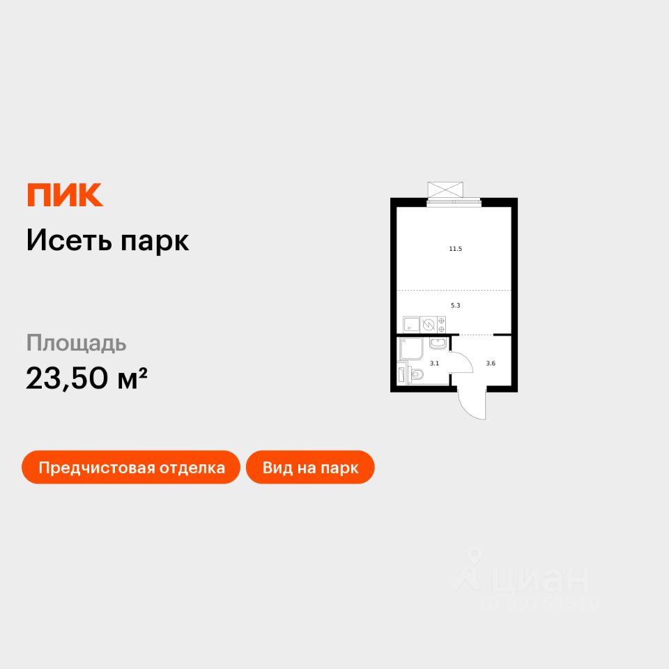 Продаётся квартира-студия площадью 23,5 кв.м на 23 этаже 24 этажного дома (Корпус 4, Секция 1) проекта ПИК Исеть парк. Светлый просторный подъезд на уровне земли, функциональная планировка, большие окна, предчистовая отделка. ''Исеть парк'' возводится в Октябрьском районе Екатеринбурга — на берегу реки Исеть в окружении трёх крупных лесопарков. До метро ''Ботаническая'' можно дойти за 15 минут, а дорога на автомобиле до центра города занимает 20 минут. Проект включает шесть домов и многоуровневый паркинг. На первых этажах открываются кафе, магазины и полезные сервисы. А в уютных дворах-парках есть детские и спортивные площадки. Район хорошо развит: есть школы и детские сады, магазины и поликлиники. Ещё здесь находится большой развлекательный комплекс с аквапарком ''Лимпопо'' и крупнейший на Урале океанариум, городской зоопарк и Академический театр оперы и балета. Артикул 869860 (Застройщик ООО ''СЗ ''Столица'')