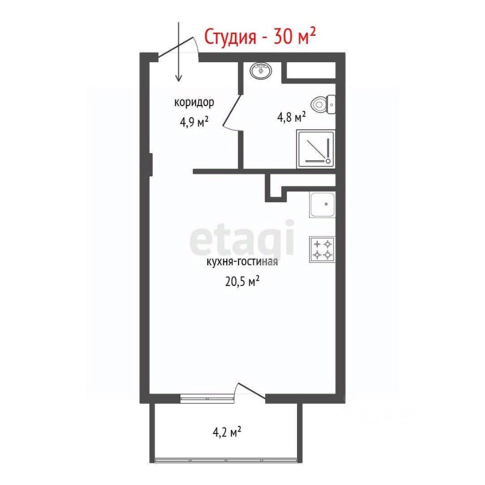 30 м² · Этаж 4 из 25