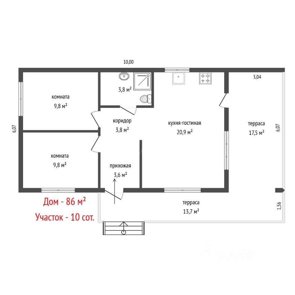 Дом 86 м² · 10 соток · 1 этаж