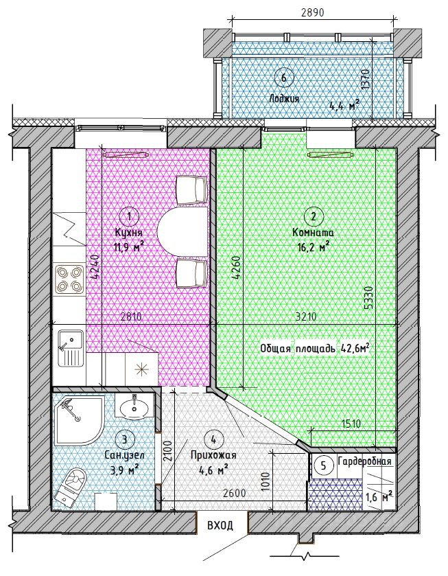 42 м² · Этаж 14 из 16