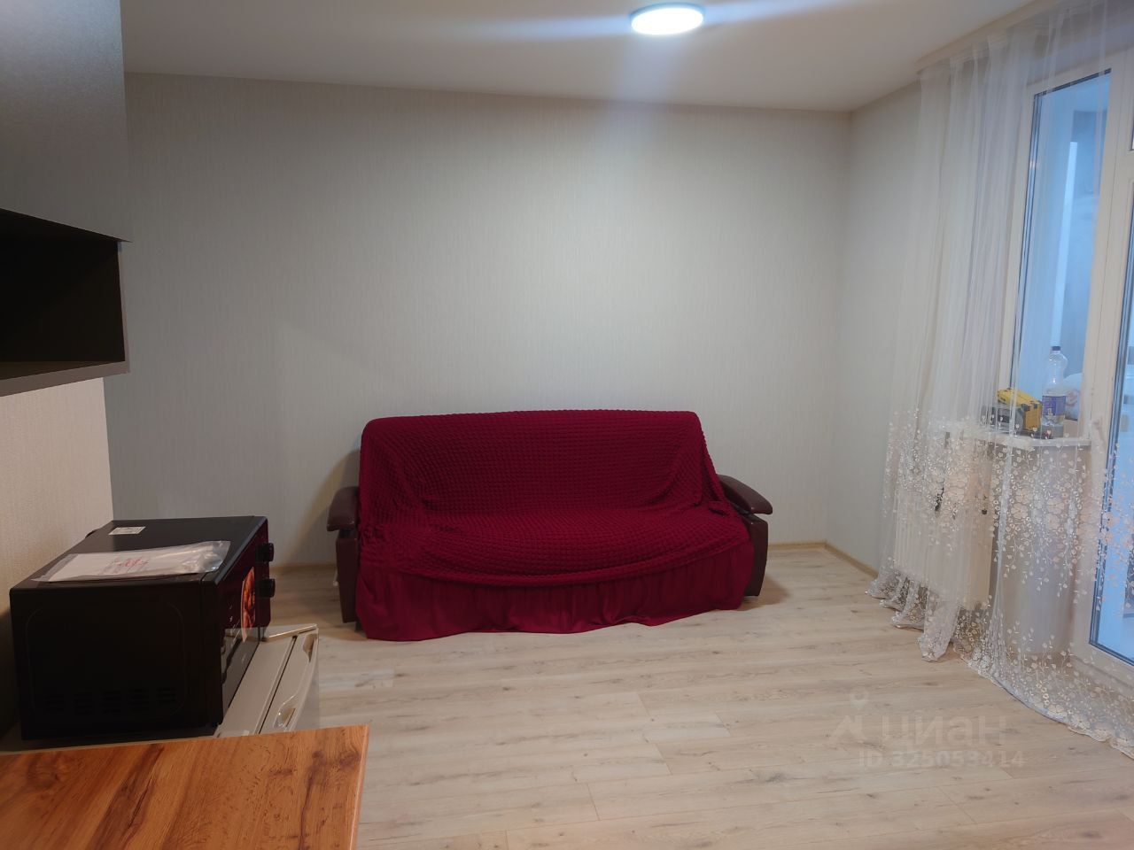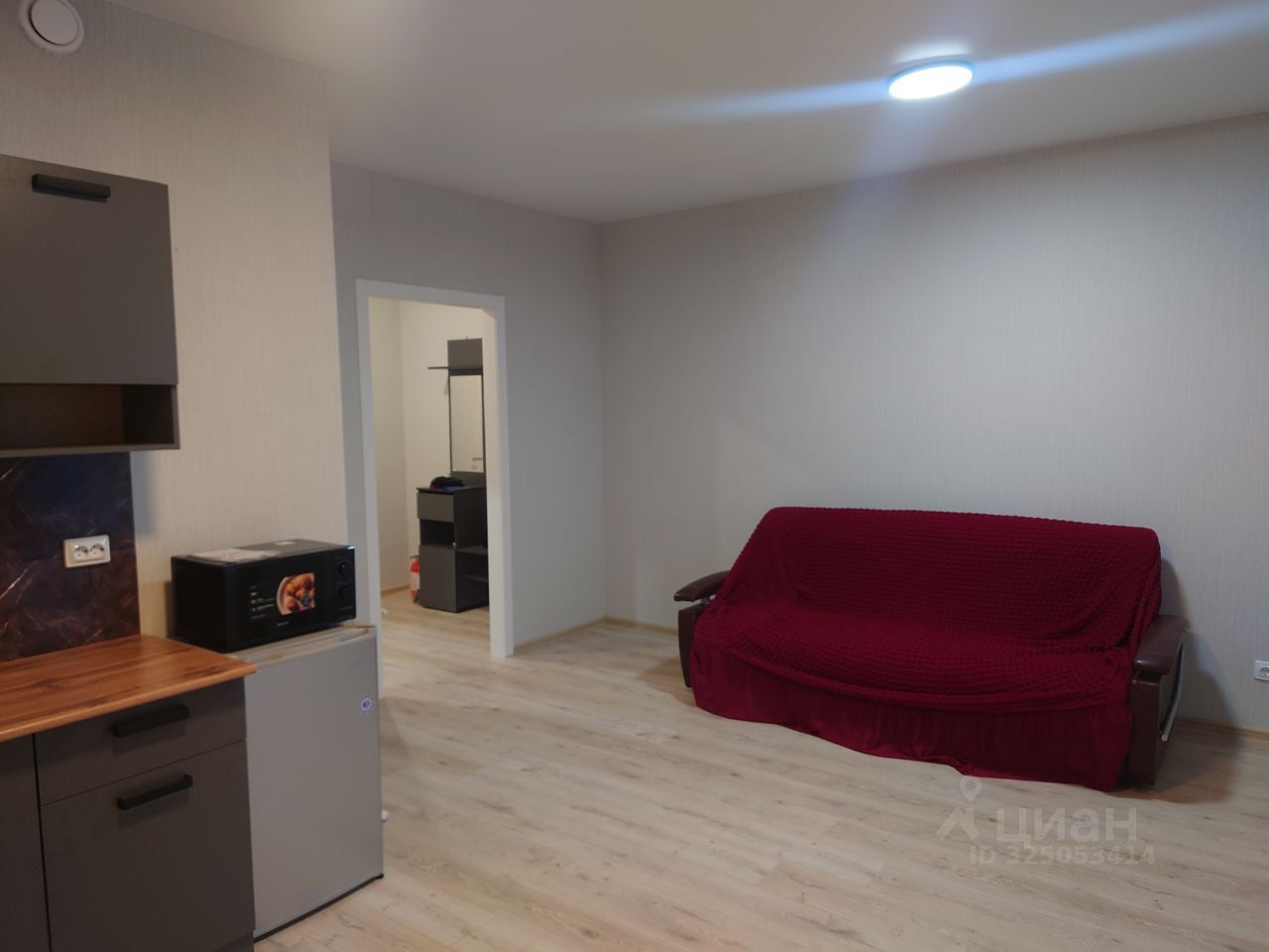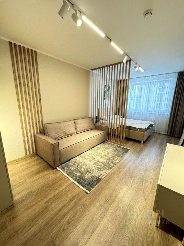 Сдам прекрасную студию в развивающемся районе. Внутри сделан свежий качественный ремонт. На кухне холодильник, микроволновка, плитка для готовки (на фото её нет, так как не успели привезти). В зоне спальни установлен раскладной диван. Есть выход на лоджию с видим во двор. Территория двора закрытая, без машин. В шаговой доступности магазины, пункты выдачи заказов, остановки общественного транспорта, аптеки и так далее.