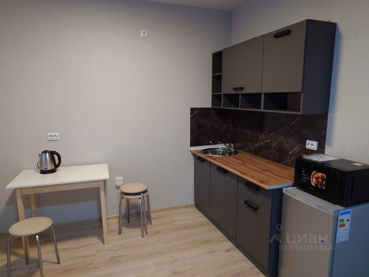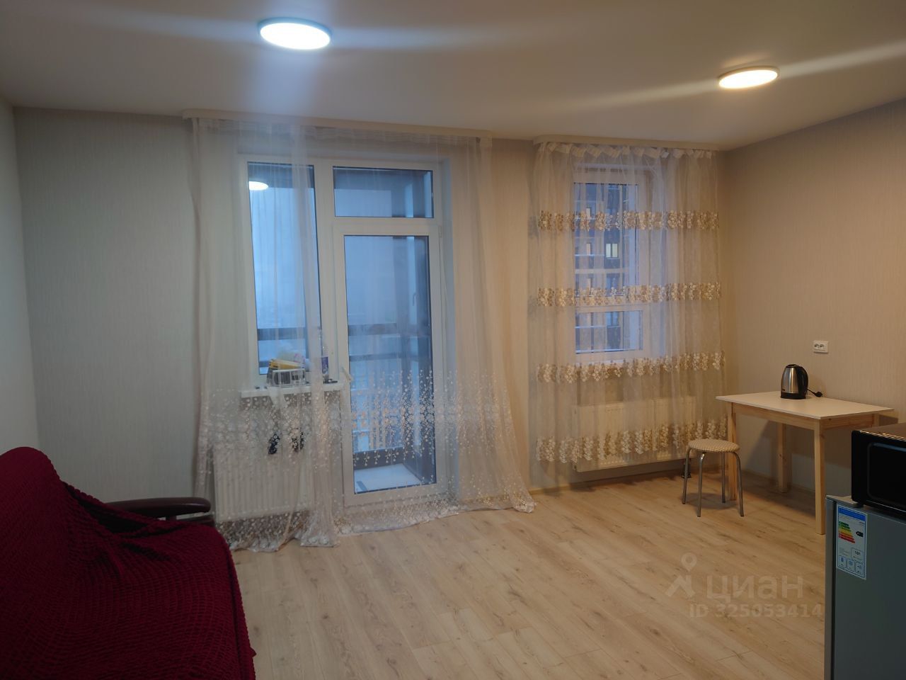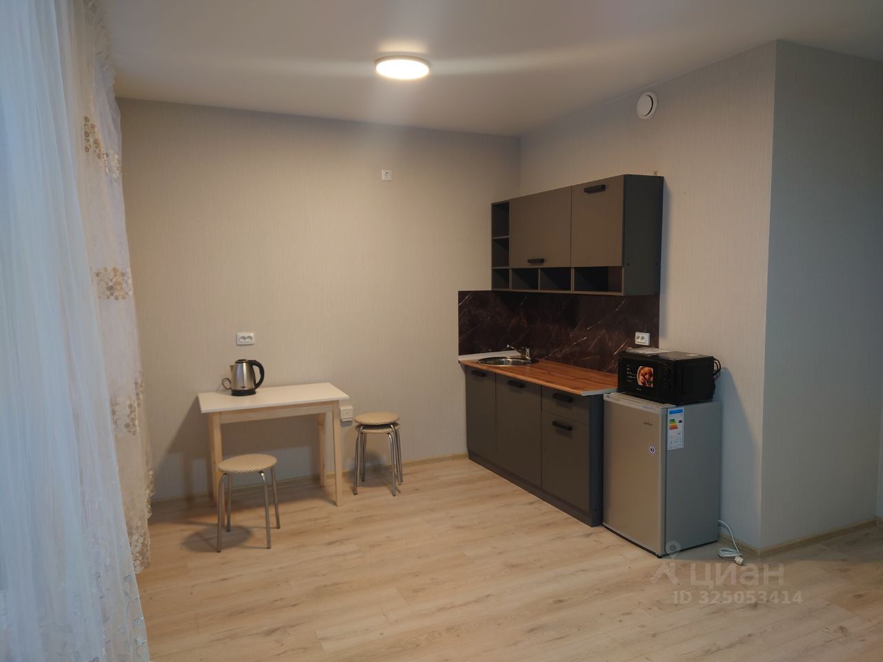 Сдам прекрасную студию в развивающемся районе. Внутри сделан свежий качественный ремонт. На кухне холодильник, микроволновка, плитка для готовки (на фото её нет, так как не успели привезти). В зоне спальни установлен раскладной диван. Есть выход на лоджию с видим во двор. Территория двора закрытая, без машин. В шаговой доступности магазины, пункты выдачи заказов, остановки общественного транспорта, аптеки и так далее.