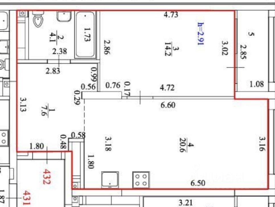 66 м² · Этаж 20 из 21